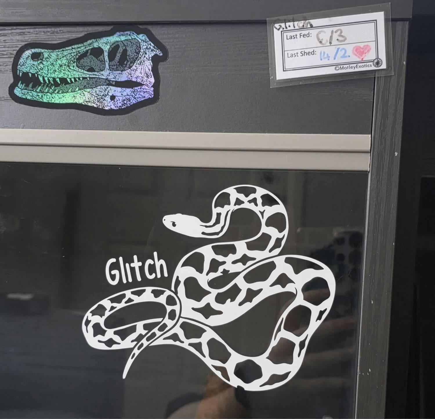 ¡Haz una declaración audaz con esta calcomanía de serpiente rata rusa! Las elegantes y llamativas bandas amarillas contrastadas con las escamas negras profundas hacen de esta calcomanía un regalo ideal para los amantes de los reptiles. Es resistente e impermeable, para que puedas lucir tu estilo (¡totalmente genial!) dondequiera que vayas.